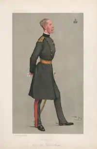Educated at Eton College, Methuen served two years as a cornet in the Royal Wiltshire Yeomanry and then joined the Scots Fusilier Guards as an ensign in the regiment and lieutenant in the army on 22 November 1864.[2] He was promoted to lieutenant in the regiment and captain in the army on 25 December 1867,[3] and became adjutant of the 1st battalion in 1868.[4] He became brigade major, Home District in 1871 and saw active duty on the staff of Sir Garnet Wolseley at Amoaful in 1873 during the Third Anglo-Ashanti War.[4] Promoted to captain in the regiment and lieutenant colonel in the army on 15 July 1876,[5] he became assistant military secretary in Ireland in 1877, military attaché in Berlin in 1878 and quartermaster-general at the Home District in April 1881,[6] before being promoted to colonel on 1 July.[7] He was the commandant of headquarters in Egypt for three months in 1882,[8] being present at the Battle of Tel el-Kebir.[4] On return to the UK he became assistant-adjutant and quartermaster-general for the Home District again.[9] He was promoted to major in the regiment on 25 October 1882.[10]