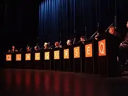Following two failed leadership runs in 1985 and 2005, Marois briefly left political life in 2006. A year later, she stood unopposed to become the seventh leader of the Parti Québécois on June 26, 2007. From 2008 to 2012, she served as leader of the Official Opposition. In spite of internal strife in 2011 and early 2012, where she survived several challenges to her leadership from prominent members of her caucus – earning her the nickname Dame de béton,[9] "Concrete Lady" – she led the Parti Québécois to victory with a minority government in the 2012 Quebec general election, thus becoming the first female premier in the province's history.[10] As Premier, Marois closed down Quebec's only nuclear reactor, ended asbestos production in Quebec, and pacified the province's turbulent campuses. Her government's highest profile initiative was the proposal of a controversial Quebec Charter of Values which would have banned the province's 600,000 government employees from wearing religious symbols including turbans, Islamic veils and Jewish kippahs.[8] However, the crucifix (notably, the one hung by above the speaker's chair in the provincial legislature) would not have been banned under the Quebec Charter of Values.[11] Her party was defeated 19 months later in the 2014 Quebec general election, an election that she herself had called.[12] Marois was personally defeated in the riding of Charlevoix–Côte-de-Beaupré and announced her resignation as PQ leader.[13][14] Her electoral defeat marked the shortest stay of any Quebec provincial government since the Canadian Confederation and the lowest showing for the PQ since its first general election in 1970.[15][16]
