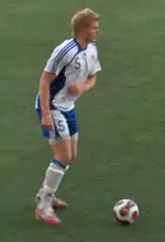Arajuuri made his debut in the Finland national under-21 football team in a friendly against Poland in Jyväskylä on 3 June 2008.[29] Arajuuri was called up to represent Finland in the U-21 national team qualifiers for the 2011 U-21 Euros. He was a part of the squad that faced the Netherlands and Poland in September 2009, and since that become a regular.[30] Arajuuri has also represented Finland's U23 national team in the International Challenge Trophy.[31]