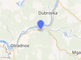 Pavlovo (Russian: Па́влово) is an urban locality (an urban-type settlement) in Kirovsky District of Leningrad Oblast, Russia, located on the left bank of the Neva River, at the mouth of the Mga River, east of Saint Petersburg. Municipally, together with three rural localities, it is incorporated as Pavlovskoye Urban Settlement, one of the eight urban settlements in the district. Population: 3,250 (2010 Census);[2] 3,365 (2002 Census);[7] 3,886 (1989 Census).[8]