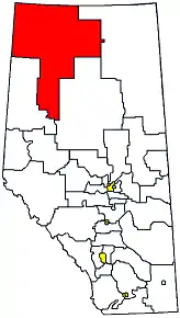 | Northwest Territories boundary | Fort McMurray-Wood Buffalo and Lesser Slave Lake | British Columbia boundary | Dunvegan-Central Peace-Notley |