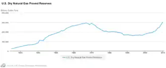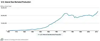 {{cite journal}}: Cite journal requires|journal=(help) - "U.S. Natural Gas Marketed Production 1900 – 2005 (MMcf)". U.S. Department of Energy. Archived from the original on 18 July 2007. Retrieved 16 July 2007.