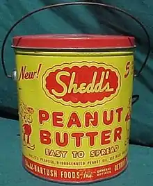 An antique Shedd's Peanut Butter tin. Shedd was an American brand which was discontinued in the 1980s.