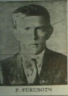 He was elected general secretary for the Communist Party of Norway (Norges Kommunistiske Parti, NKP) from its foundation in 1923, and was chairman of the party from 1925 to 1930.[4] During this period he was among the loyal Moscow supporters and criticized people who diverged from the "correct" political line, as well as the Labour Party.[3] Furubotn stayed in Moscow from 1930 to 1938, when he returned to Norway.[1] He was also deputy chairman of the Communist Party of Norway after the Finnish War in 1946.