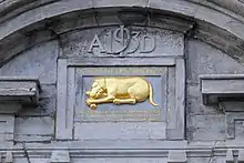 Perhaps the most famous pedimental sculpture in Quebec is Le Chien d'Or (c.1688) in Quebec City.[3] The gray limestone relief panel depicts a dog gnawing a bone,[4] a metaphor for nursing a grudge.