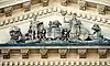 enthroned central figure of Manitoba, figures representing the Red River and the Assiniboine River at far right | Albert Hodge, sculptor Piccirilli Brothers (New York City), carvers[19] |