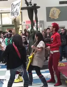 ![]() Peelander-Z performing at the Asian Heritage celebration in New York; left to right: Peelander Pink, Peelander Yellow and Peelander Green | |