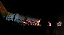 Pegasus Airlines Flight 2193 was a scheduled domestic passenger flight from Izmir to Istanbul in Turkey operated by Pegasus Airlines. On 5 February 2020, the Boeing 737-800 operating the route skidded off the runway while landing at Istanbul-Sabiha Gökçen International Airport, Turkey. Three people were killed, 179 people were injured, and the aircraft was destroyed.[1] It was the first fatal accident in the airline's history.[2] The accident came less than a month after another Pegasus Airlines accident (Flight 747) involving a Boeing 737 skidding off the runway at the same airport.[3]