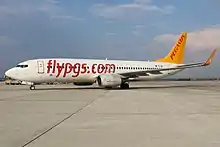 The aircraft was a Boeing 737-86J[lower-alpha 1] (registration TC-IZK), serial number 37742. It was 11 years old at the time of the crash, having first flown in January 2009. The plane had previously been operated by the now-defunct German airline Air Berlin before being acquired by Pegasus in May 2016.[4] Prior to the crash, Pegasus was scheduled to withdraw this aircraft once leasing expired, as the airline plans to move to an all-Airbus fleet in the future.[5][6]