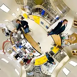 Like many other projections based upon complex numbers, the Peirce quincuncial has been rarely used for geographic purposes. One of the few recorded cases is in 1946, when it was used by the U.S. Coast and Geodetic Survey world map of air routes.[6] It has been used recently to present spherical panoramas for practical as well as aesthetic purposes, where it can present the entire sphere with most areas being recognizable.[7]
