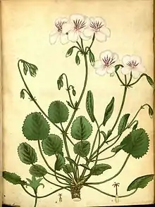 - Geraniaceae: The Natural Order of Gerania, Illustrated by Coloured Figures and Descriptions; Comprising the Numerous and Beautiful Mule-varieties Cultivated in the Gardens of Great Britain with Directions for their Treatments. Vol. III, Robert Sweet, 1824-1826, page 222