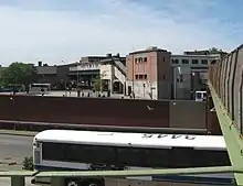 This is an elevated station which has two tracks, one island platform and two disused side platforms. The tracks end at bumper blocks at the north end of the platforms. The station was formerly set up as a Spanish solution with alighting passengers using the side platforms and boarding passengers using the island platform. Now all passengers use the island platform.[23]