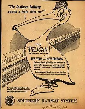 The Pelican was a named train of the Southern Railway which ran from New York City to New Orleans and back until 1970.