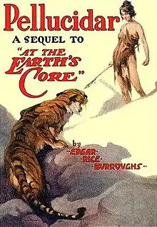 Pellucidar is a 1915 fantasy novel by American writer Edgar Rice Burroughs, the second in his series about the fictional "Hollow Earth" land of Pellucidar. It first appeared as a five-part serial in All-Story Weekly from May 1 to 29, 1915. It was first published in book form in hardcover by A. C. McClurg in September, 1923. A map by Burroughs of the Empire of Pellucidar accompanied both the magazine and book versions.