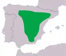 The Hesperides' parsley frog is endemic to Spain.[1] This species is found mostly in mid-elevation montane regions of eastern and central Spain.[1]