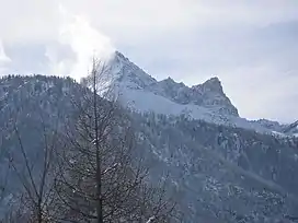![]() Pelvo d'Elva seen from Casteldelfino in winter. | |