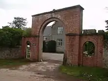 Pen-y-clawdd House, a third of a mile south-east of the village, is described by Newman as "notable only for the plain but nobly scaled red brick arch, dated May 1861." [9] The house is not listed but the range of outbuildings, including the 17th century barn, is listed Grade II.[10]