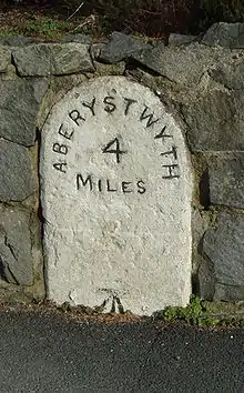Pen-y-garn is a small village in the Tirymynach district of Ceredigion, Wales, approximately 4 miles (6 km) north-east of Aberystwyth.[3] Along with the hamlet of Rhydypennau, Pen-y-garn is now often considered to be part of the neighbouring larger village of Bow Street. All three places stretch in a long narrow strip along the main Aberystwyth to Machynlleth road (A487). As well as the houses on the main road from Cross Street (Y Lon Groes) up to Ysgol Rhydypennau, Pen-y-garn also includes the housing estates of Maes Ceiro, Bryn Meillion, Maes y Garn and Cae'r Odyn.