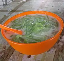 - Cendol - a dessert with green noodles in coconut milk, brown sugar and shaved ice.