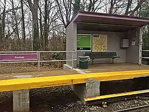 Penfield station is a SEPTA rapid transit station in Haverford Township, Pennsylvania. It serves the Norristown High Speed Line (Route 100) and is located at Manoa Road and Lawson Avenue. Both local trains and Norristown Express trains stop at Penfield. The station lies 1.9 track miles from 69th Street Terminal.