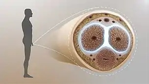 Penetrating injuries can be caused by accidents during sexual activities (typically, by foreign objects inserted into the urethra), by weapons (i.e. bullets) during wartime, or by stabbing. These injuries can have varying severity and be superficial, affect the corpora cavernosa, other soft tissue, and/or urethra.[4][5][6] In 50% of cases, the urethra is injured.[1] Some foreign objects may be removed like any other penetrating object in soft tissue; using forceps and gentle traction. However, if the foreign object was inserted into the urethra or has damaged the urethra transversely, urethography is used to avoid further injury to the urinary tract while removing the object.[8] Penetrating injuries make up approximately 45% of civilian penile injuries.[1]