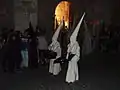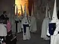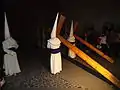 The procession starts at 11 pm Holy Thursday and is inspired by the burial of a poor man in a Zamora's village:[2] Jesus' body is covered with a shroud and is led to the grave in a simple stretcher, accompanied by its neighbors in complete silence, broken only by the bells of the viaticum and the slight tapping of the torches on the ground.[3]