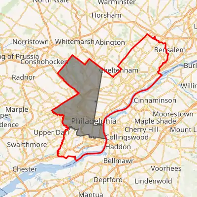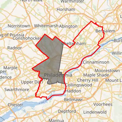 Interactive map of district boundaries, with Philadelphia highlighted in red | |||