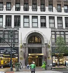 Other buildings around the complex use the Pennsylvania Plaza name as an alternate address, such as the 5 Penn Plaza office building on Eighth Avenue, to the northwest; the Pennsylvania Building at 225 West 34th Street (14 Penn Plaza), north of the station; and the Hotel Pennsylvania at 401 Seventh Avenue (15 Penn Plaza), east of the station. The numbering of the Penn Plaza addresses around the area does not follow a consistent pattern.[1]