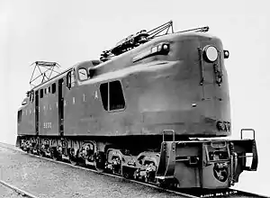 The Pennsylvania Railroad's class DD2 electric locomotive was a single prototype locomotive never placed into series production.[3] It was intended as an improved and simplified GG1 for use on the planned, but never built, extension of the PRR's electrification west of Harrisburg, Pennsylvania.[1] The one locomotive produced was numbered #5800 and used in regular Baltimore tunnel helper service until it was scrapped in September 1962.[2]