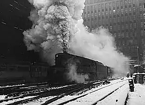 The last production T1 (no. 5549) entered service on August 27, 1946.[12] Engine no. 5539 developed 5,012 hp (3,737 kW), as tested between September 11, 1946, and September 14, 1946, by Chesapeake and Ohio Railway dynamometer car DM-1 while on loan to C&O. In 1944 no. 6110, tested on the stationary test plant in Altoona, developed 6,550 hp (4,880 kW) in the cylinders at 85 mph (137 km/h).[13] They also regularly racked up over 8,000 miles a month.[14]
