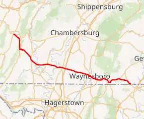 | Waynesboro | 28.798 | 46.346 | West end of PA 316 concurrency | ||