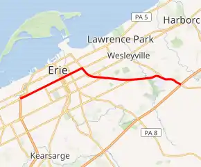| Harborcreek Township | 7.912 | 12.733 | Western terminus of concurrency with PA 430. | ||