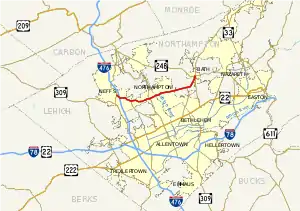 | Northampton | East Allen Township | 10.761 | 17.318 | West end of PA 987 concurrency | |