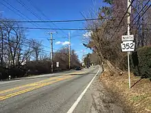 Pennsylvania Route 352 (PA 352) is a 19-mile (31 km) north–south route that runs from U.S. Route 13 Business (US 13 Bus.) in Chester, Delaware County north to US 30 in Frazer, Chester County. The route passes through suburban areas of Delaware and Chester counties, serving Parkside, Brookhaven, Elwyn, Lima, Gradyville, and Goshenville. PA 352 is a four- to five-lane road between Brookhaven and US 1, otherwise it is generally a two-lane road. The route intersects Interstate 95 (I-95) in Chester and US 1 near Lima at interchanges. PA 352 was first designated by 1928 to run between its current termini. A portion of the route between Brookhaven and US 1 was realigned to a straighter alignment in the 1950s. By 1980, PA 352 was realigned to a short concurrency with PA 3 to avoid intersecting it at a sharp angle.
