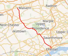 | East Whiteland Township | 18.583 | 29.906 | Northern terminus | ||