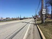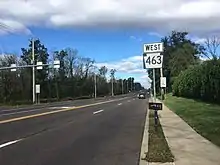 Pennsylvania Route 463 (PA 463) is a 12.9-mile-long (20.8 km) state highway completely in Montgomery County, Pennsylvania. Its western terminus is at PA 63 in Hatfield Township and its eastern terminus is at PA 611 in Horsham. PA 463 runs through the northern suburbs of Philadelphia and passes through the towns of Hatfield, Montgomeryville, and Horsham. The route intersects PA 309, U.S. Route 202 Business (US 202 Bus.), and US 202 in Montgomeryville and PA 152 in Prospectville. Through its length, the route carries the names Forty Foot Road, Broad Street, Main Street, Cowpath Road, and Horsham Road. PA 463 was designated in 1928 and fully paved by 1940. In 2010, a portion of the route in Montgomery Township was widened.
