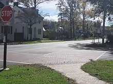The Bustleton and Somerton Turnpike, a turnpike, was incorporated on April 14, 1840, running through present-day Northeast Philadelphia.[5] In 1872, the Bustleton and Somerton Turnpike was combined with the Richborough and Feasterville Turnpike Road to form one continuous turnpike.[6] The city of Philadelphia approved renaming the Bustleton and Somerton Turnpike within the city to Bustleton Avenue in 1903.[7] When Pennsylvania legislated its state highways in 1911, what would become PA 532 was legislated as part of Legislative Route 252 between Newtown and Yardley.[8] In 1928, PA 532 was designated to run from US 1 in Northeast Philadelphia north to PA 32 in Yardley, following its current alignment to Newtown, where it turned east and ran to Yardley. The portion of the current route between Newtown and Washington Crossing was designated as PA 632.[9][10]