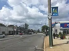 At the Laurel Avenue intersection, PA 73 becomes Cottman Avenue and turns into a three-lane road with one eastbound lane and two westbound lane that forms the border between the city of Philadelphia in Philadelphia County to the northeast and Cheltenham Township in Montgomery County to the southwest, coming to the entrance to the Fox Chase Cancer Center to the northeast of the road. The route passes between Burholme Park in Philadelphia and homes in Cheltenham Township. The road passes more homes and fully enters Philadelphia upon passing under SEPTA's Fox Chase Line south of the Ryers station in the Ryers neighborhood. PA 73 heads into Northeast Philadelphia and becomes a four-lane road as it runs through commercial areas, reaching a bridge over CSX's Trenton Subdivision railroad line.[4][7] The route intersects Rising Sun Avenue and PA 232 (Oxford Avenue) at an intersection locally known as Five Points.[4][7][8] The road heads past a mix of homes and businesses, running between the Burholme neighborhood to the northeast and the Lawncrest neighborhood to the southwest. After crossing Algon Avenue, the route passes to the southwest of Northeast High School. PA 73 gains a center left-turn lane and crosses Castor Avenue near the Rhawnhurst neighborhood. The route continues past several shopping centers and intersects Bustleton Avenue, at which point it passes southwest of Roosevelt Mall. PA 73 comes to an interchange with US 1 (Roosevelt Boulevard), intersecting the local lanes at-grade and passing over the express lanes.[4][7]