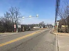 Pennsylvania Route 73 Alternate Truck were truck routes of PA 73 that bypassed a weight-restricted bridge over a branch of the Wissahickon Creek at the PA 309 interchange in Oreland, on which trucks over 36 tons and combination loads over 40 tons were prohibited. The eastbound alternate truck route followed PA 309 and Paper Mill Road. The westbound alternate truck route followed Paper Mill Road and Bethlehem Pike. There was also a PA 73 Alt. Truck for traffic from northbound PA 309 to access westbound PA 73, following PA 309 north from PA 73 to the Pennsylvania Turnpike (I-276) interchange, where it utilized the cloverleaf ramps to return to southbound PA 309 and head south to the PA 73 exit. PA 73 Alt. Truck was signed in 2013.[36][37][38][39] As recently as 2019, weight restrictions were removed on the bridge,[34] and signage was removed, eliminating the route.