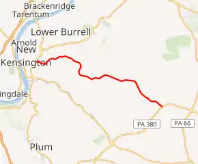 Pennsylvania Route 780 (PA 780) is an 8.49-mile-long (13.66 km) state highway located in Westmoreland County, Pennsylvania. The western terminus is at PA 56/PA 366 in New Kensington. The eastern terminus is at PA 380 in Washington Township.
