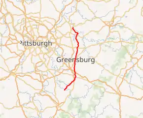 | Greensburg | 23.740 | 38.206 | Northern terminus of PA 66 Business concurrency, southern end of PA 130 eastbound concurrency | ||