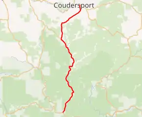 | Coudersport | 39.794 | 64.042 | Northern terminus | ||