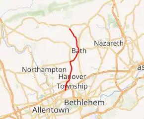 | Bath | 6.619 | 10.652 | North end of PA 329 concurrency; eastern terminus of PA 329 South end of PA 248 concurrency | ||