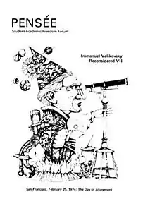 Pensée: Immanuel Velikovsky Reconsidered ("IVR") was a special series of ten issues of the magazine Pensée advancing the pseudoscientific theories of Immanuel Velikovsky. It was produced to "encourage continuing critical analysis of all questions raised by Velikovsky's work",[1] published between May 1972 and Winter 1974-75 by the Student Academic Freedom Forum, whose president was David N. Talbott, with the assistance and cooperation of Lewis and Clark College, Portland, Oregon. Velikovsky -- "the man whose work was being examined 'objectively'" insinuated himself into the editing of the May 1972 issue,[2] just as he had done earlier for the April 1967 "Velikovsky" issue of Yale Scientific Magazine.[3]