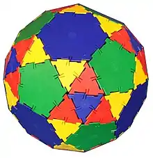 With regular hexagons and pentagons it is a symmetrohedron.[2] The triangles are not equilateral with triangle-triangle edges compressed by 1.8%.