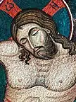 In December 2021, the Crucifix was placed on the iconostasis after the structure was made in August. The Crucifix with a height of 4.3 meters, rising to 22.3 meters from the floor of the cathedral. In the side-attendant of the Crucifix, are the mosaics (ro:Molenii) of the Theotokos and Saint John the Apostle, and together with the Crucifix have 10 square meters of mosaic. On the face behind the Crucifix, is a pelican with chicks, and at the bottom is a quote from the second ode of the Lord's Lamentations at the Burial (ro:Prohod): Like a pelican, You hurt yourself into your rib, O Saviour!; You gave your life, for your sons who died, spreading living springs over them. The image of the mother pelican feeding her chicks with his blood, is rooted in an ancient legends which preceded Christianity. The pelican is a symbol of the Passion of Jesus for Christianity and the Eucharist in the East and in the West.[114][115][116]