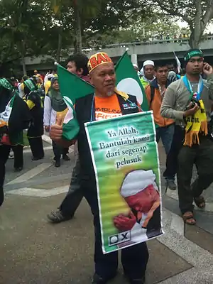 ![]() Supporter of opposition leader Nik Aziz Nik Mat of PAS. | |||