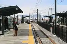 Peoria station, also known as Peoria/Smith station, is a Regional Transportation District (RTD) station in Aurora, Colorado. The station is served by the A Line, a commuter rail line from Union Station in Downtown Denver to Denver International Airport, and the R Line, a light rail line crossing through Aurora and South to Lone Tree. A Line travel times from the station to Downtown Denver and Denver International Airport are about 17 and 20 minutes, respectively. Peoria station is the northern terminus of the R Line with a travel time of 58 minutes to the southern terminus at Lincoln station.