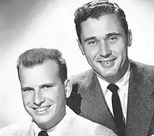 Aylesworth and Peppiatt relocated to the United States in 1958 and got work writing for 'The Andy Williams Show.[1] They had worked together on The Jimmy Dean Show and wondered why a show hosted by a country music star didn't feature the country music more prominently.[2] Aylesworth's 2010 book The Corn Was Green: The Inside Story of Hee Haw published by McFarland & Company told how he and Peppiatt came up with the idea for Hee Haw after seeing "country banter" between Charley Weaver and Jonathan Winters on The Jonathan Winters Show, and seeing that the shows atop the Nielsen ratings included The Andy Griffith Show, The Beverly Hillbillies, Gomer Pyle, U.S.M.C., Green Acres and Petticoat Junction, along with Rowan & Martin's Laugh-In and the duo conceived immediately of the format of country variety resulting in one of the longest-running series in television history, Hee Haw.[1][3] Originally a summer replacement for The Smothers Brothers Comedy Hour, Hee Haw was an immediate ratings winner throughout that first summer and was permanently added to the CBS schedule in December 1969.[2] Co-hosted by Roy Clark and Buck Owens, the hour-long program featured regulars Archie Campbell, Grandpa Jones, Minnie Pearl, Junior Samples, Lulu Roman and Gordie Tapp.[2][3] Comedian and frequent Peppiatt & Aylesworth collaborator Jack Burns was also a writer and major contributor in the early years of the show. There was also a spinoff sitcom "Hee Haw Honeys". One of the stars of the series was a young Christian music singer, Kathie Lee Johnson (Gifford) before she married Frank Gifford.