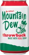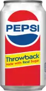 Pepsi-Cola Made with Real Sugar, originally called Pepsi Throwback (and still named as such in some markets), is a brand of soft drink sold by PepsiCo for its flagship Pepsi brand. The drink is named as such because it is flavored with cane sugar and beet sugar instead of high fructose corn syrup, which soft drink companies used to replace sugar (in their North American products) in the 1980s.[1] In addition, these drinks use retro packaging. In June 2014, the Pepsi Throwback name was replaced by the current name, which continues to be made without high fructose corn syrup. As of April 2020 it received a new logo.[2][3] The "throwback" name was also used for a variant of PepsiCo's citrus-flavored Mountain Dew.